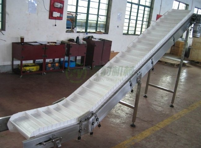 2塑钢网带输送机模块结构:把注塑成型的塑钢模块通过塑料铰接销组装成互锁单元。增加了输送带的强度,按需订制,任意组接宽度和长度。挡板和侧板可用铰接销互锁,形成整体。模块结构使维修和更换方便、减少更换时间。安全、快捷、维护简单。