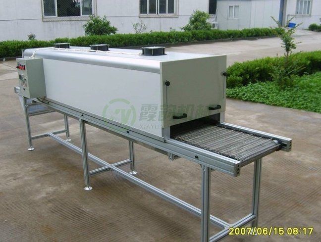 4、金属网带输送机搁板上可装各种夹具、特殊设计的支架,可配气路、电源、照明等系统。
